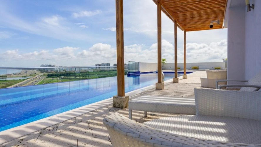 Отель Ocean Overlooking Apartment W Pool Gym Jacuzzi Wifi 502, адрес на карте Картахена, Crespo Calle 72 No. 10-45, с описанием номеров и возможностью онлайн бронирования на ресурсе vashotel.ru , цены проживания и удобства.