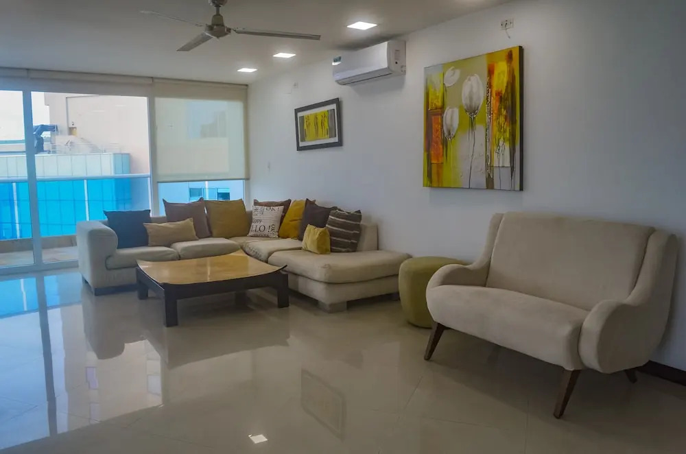 Отель Penthouse In Cartagena De Indias Colombia In Front Of The Beach, адрес на карте Картахена, Bocagrande, Carrera 2 Calle 12 Esquina, с характеристиками номеров и доступностью онлайн бронирования на площадке vashotel.ru , цены проживания и удобства.