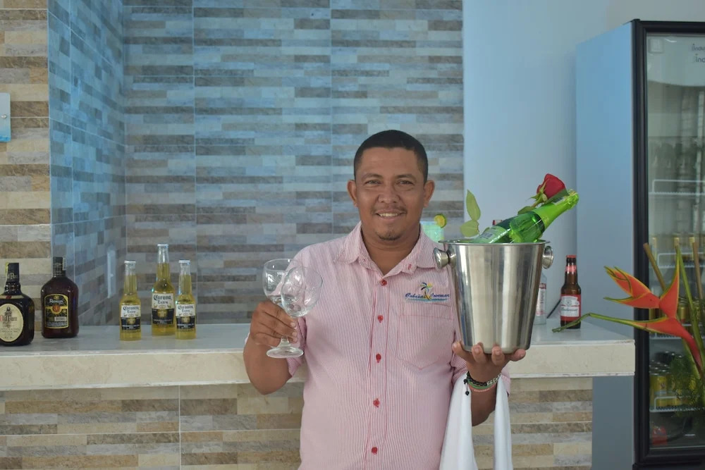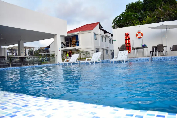 Отель Cabanas Covemar, адрес на карте Covenas, Carrera 3 4b 31 Loc 3 Colombia, с характеристиками номеров и доступностью онлайн бронирования на сайте vashotel.ru , стоимость проживания и удобства.