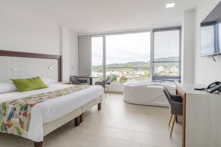 Отель Santorini 3 звезды, адрес на карте Гуатапе, Calle 28 #30 230, с описанием номеров и доступностью онлайн бронирования на площадке ВашОтель.RU , стоимость проживания и удобства.