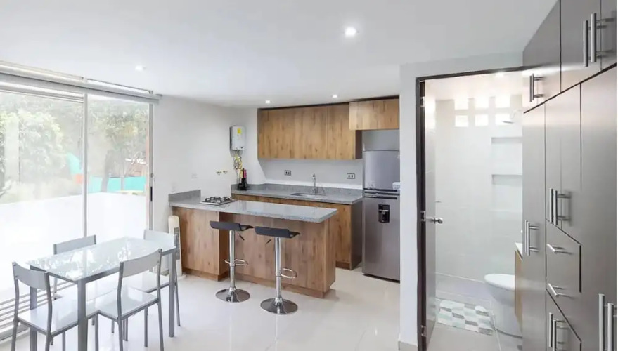 Отель Estudio De Lujo La Frontera Piso 2 Con Balcon, адрес на карте Медельин, cra 41aa # 18b sur 03, El Poblado, 050022 Medellín, Colombia, с описанием номеров и правом онлайн бронирования на сайте vashotel.ru , стоимость проживания и удобства.