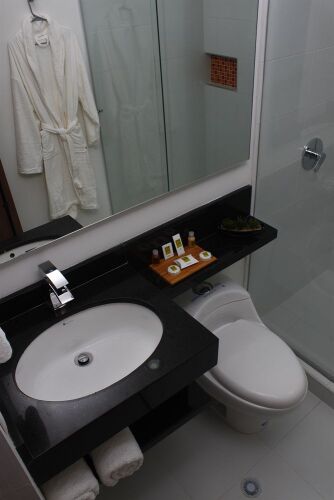 В номере вы найдёте душ. Оснащение зависит от выбранной категории номера.