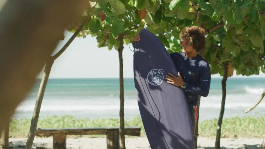 You’ll each have one free class in the studio a day, plus unlimited use of a Jim Banks performance surfboard.