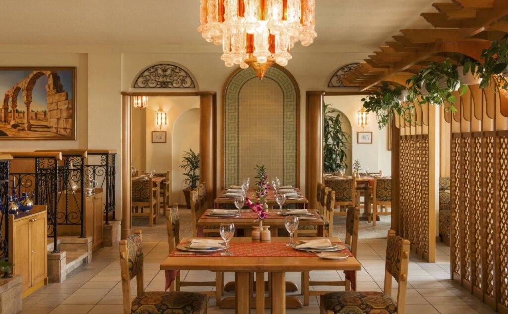 В отеле к услугам гостей есть пять ресторанов, в которых подаются блюда иранской, ливанской, индийской и международной кухни. По утрам сервируют бесплатный завтрак «шведский стол». Работает бар в лобби отеля.