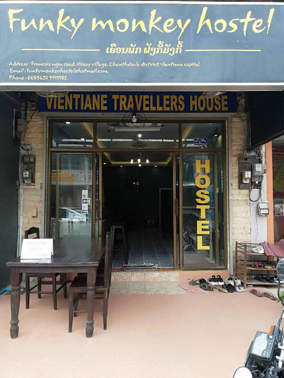 Отель Funky Monkey Hostel, адрес на карте Вьентьян, 033 Francois Ngin Road, с описанием номеров и доступностью онлайн бронирования на сайте vashotel.ru , цены проживания и удобства.