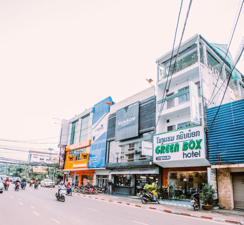 Отель Green Box Hotel - Hostel, адрес на карте Вьентьян, Rue Samsenthai, с описанием номеров и доступностью онлайн бронирования на сайте vashotel.ru , стоимость проживания и удобства.