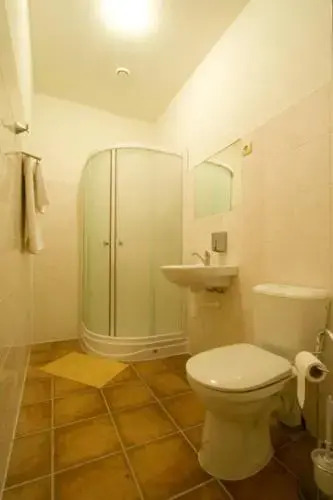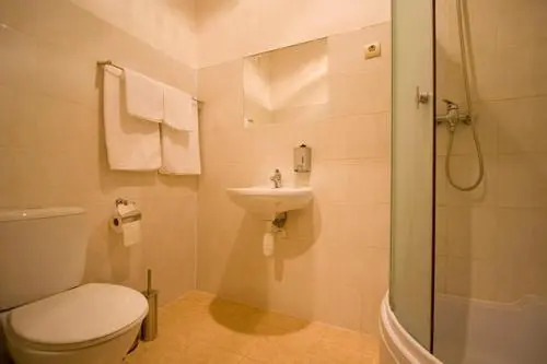 В номере вы найдёте душ и телевизор. Оснащение зависит от выбранной категории номера.