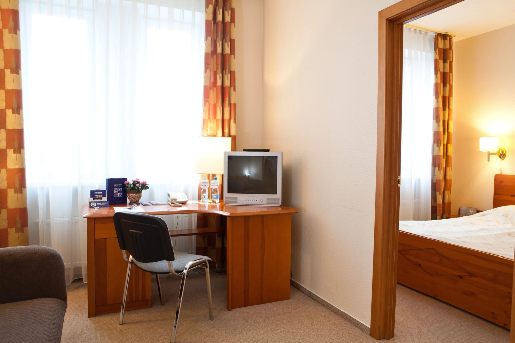 В вашем распоряжении также электронные или магнитные ключи и пресс для брюк и фен, а утюг и гладильная доска* по запросу.