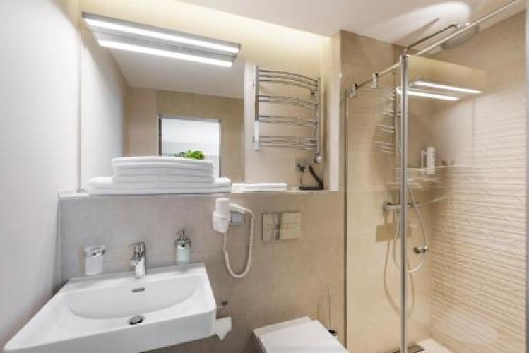 В номере вы найдёте душ и телевизор. Оснащение зависит от выбранной категории номера.