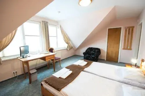 Номер уютно обставлен и оснащён необходимым, чтобы отдохнуть после долгого и насыщенного дня. Имеются душ и телевизор. Оснащение зависит от выбранной категории номера.