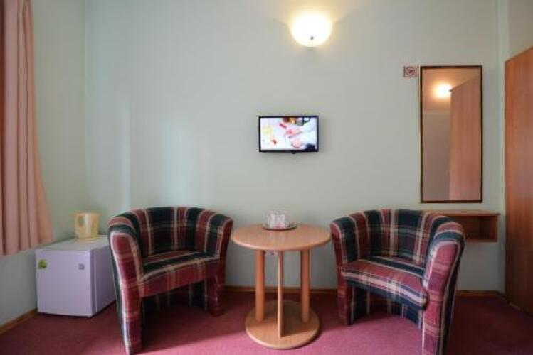 В номере вы найдёте душ и телевизор. Оснащение зависит от выбранной категории номера.