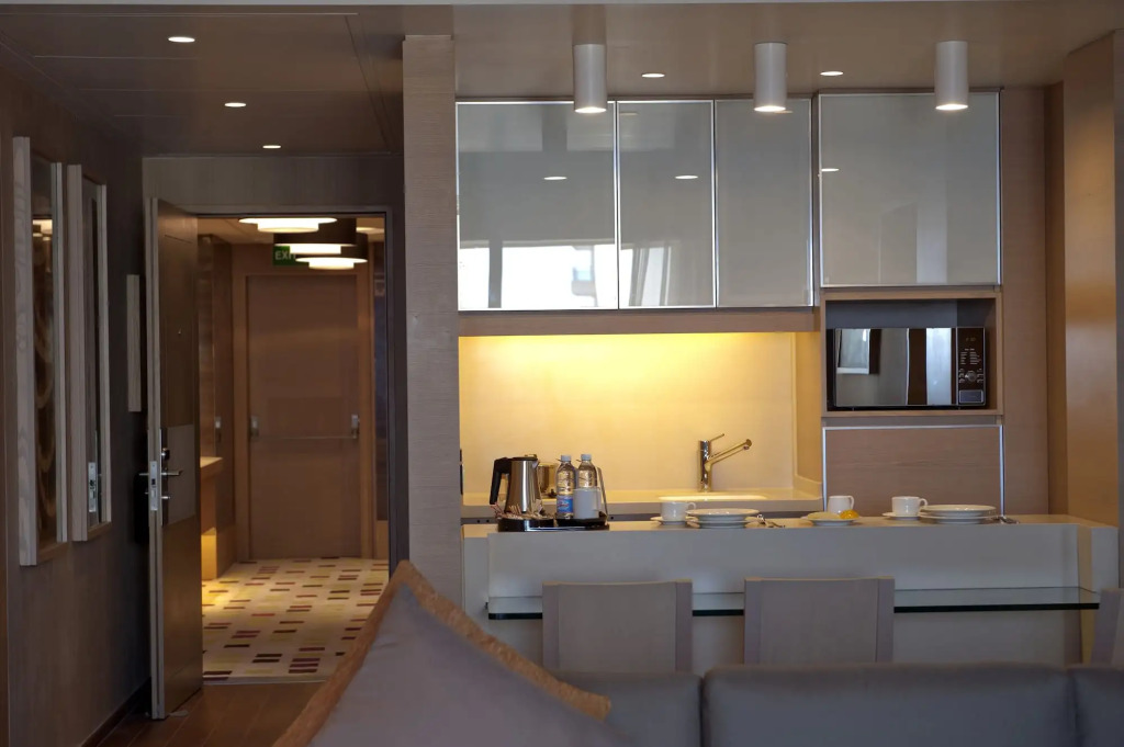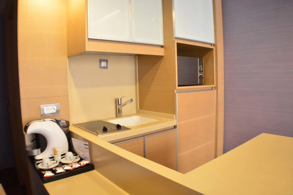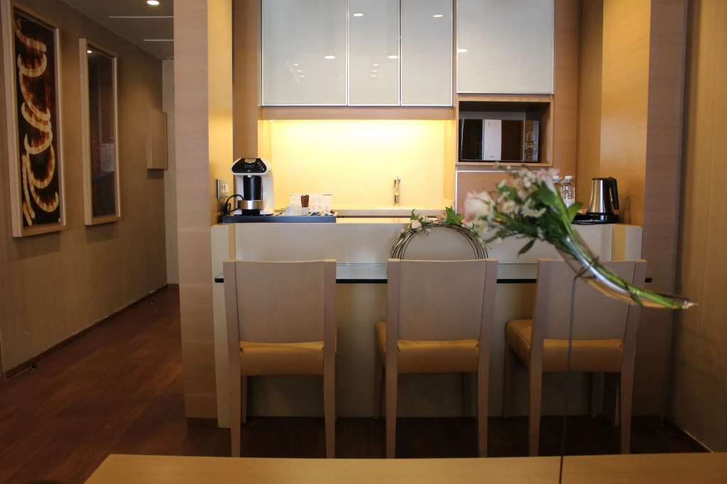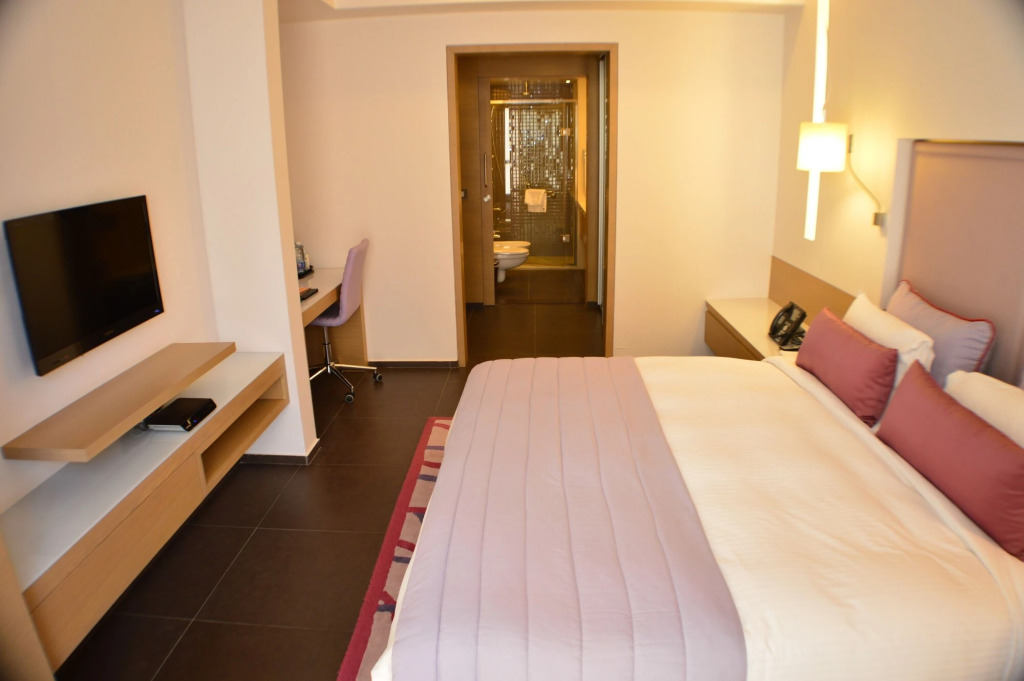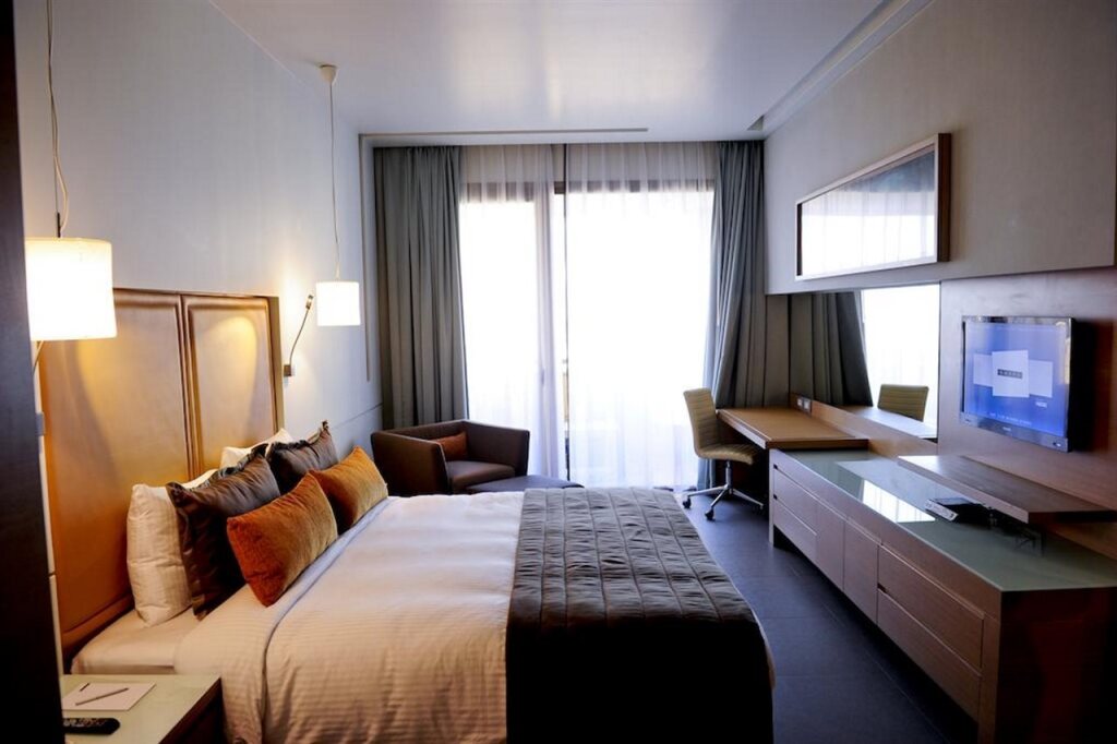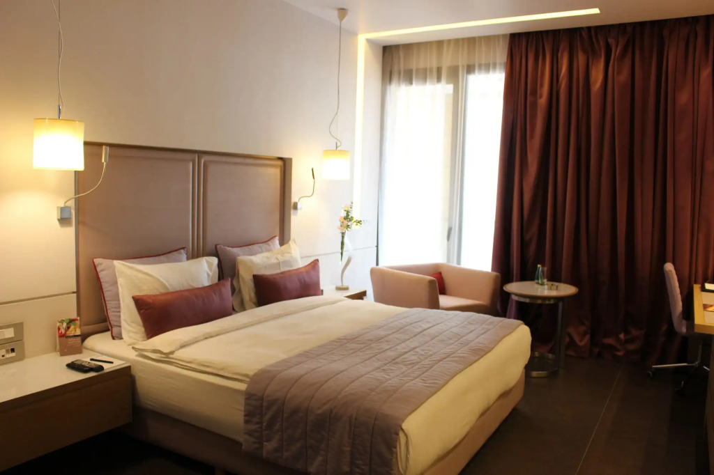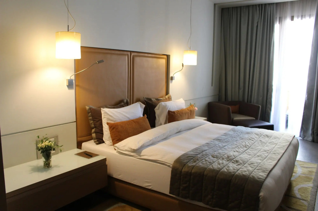 Номер уютно обставлен и оснащён необходимым, чтобы отдохнуть после долгого и насыщенного дня. Имеются DVD-плеер, душ, телевизор, мини-бар, халат и тапочки. Оснащение зависит от выбранной категории номера.