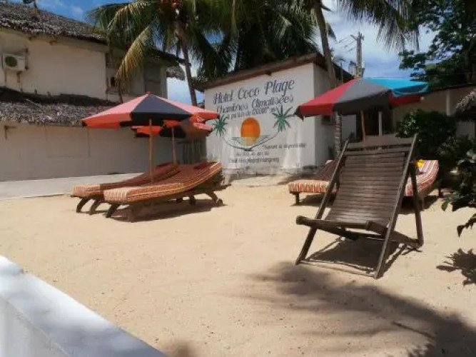 Отель Coco Plage, адрес на карте Носи-Бе, Routes des PNB Ambatoloaka, с характеристиками номеров и возможностью онлайн бронирования на ресурсе vashotel.ru , стоимость проживания и удобства.