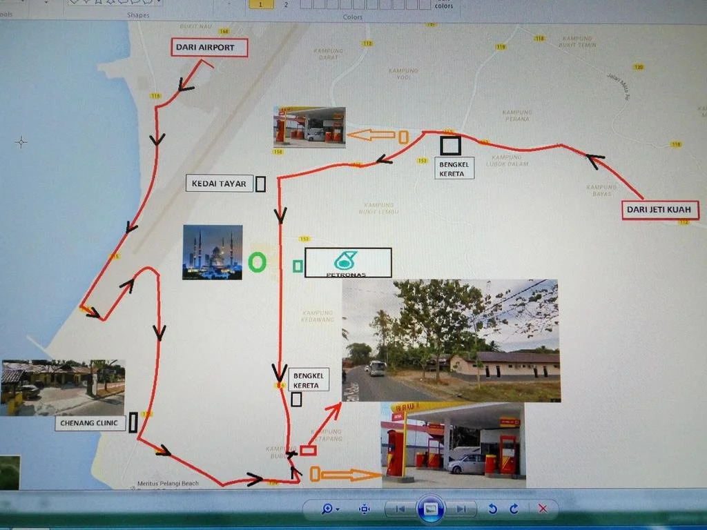 адрес на карте Лангкави, Jalan Kedawang, Mukim Kedawang, 07000 Pantai Cenang, Malaysia, с характеристиками