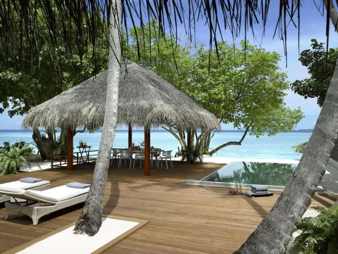 Курорт Dusit Thani Maldives располагается на пляже красивого мальдивского острова Муддо.