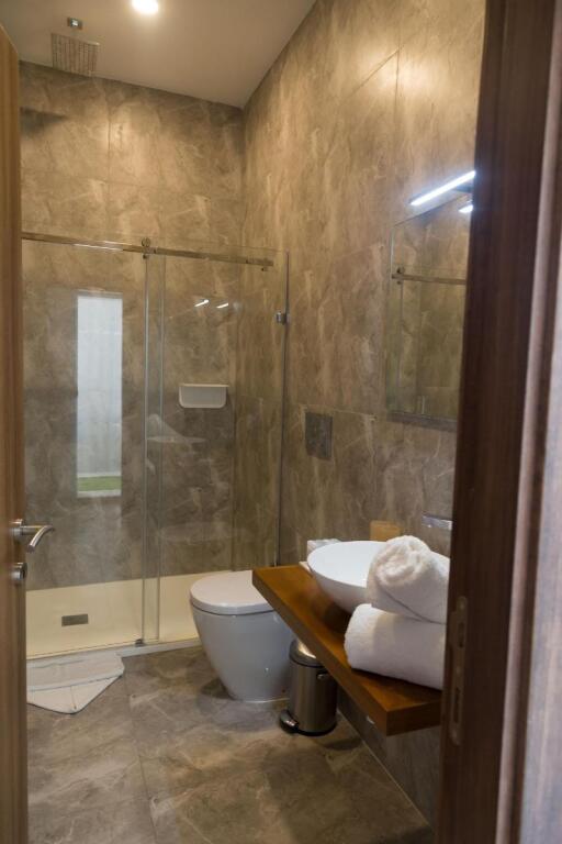 В номере вы найдёте душ и телевизор. Оснащение зависит от выбранной категории номера.