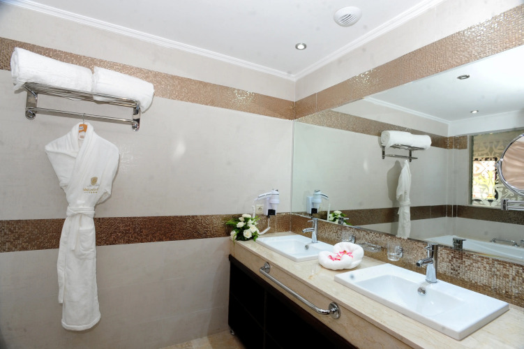 В номере вас будут ждать телевизор, мини-бар и халат. Перечисленные услуги есть не во всех номерах.
