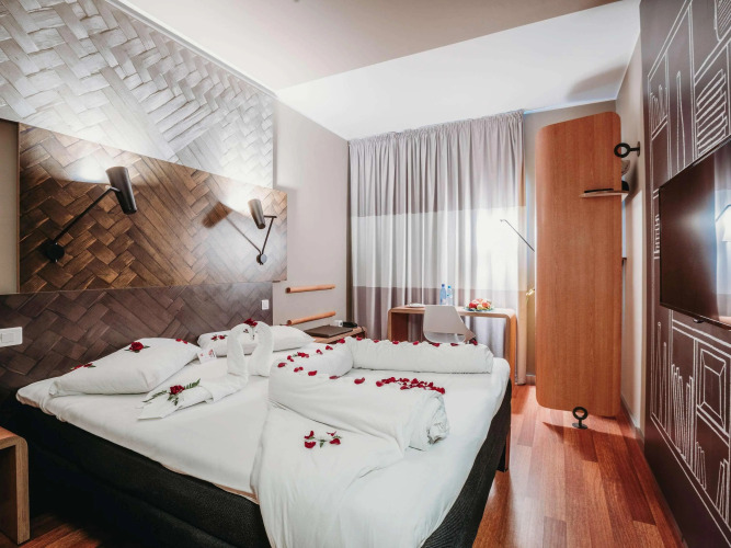 Если вы путешествуете на машине, припарковаться можно будет на парковке рядом. Можно организовать деловую встречу, переговоры и даже собеседование. Для этого предусмотрен бизнес-центр. Удобно для гостей с ограниченными возможностями: на верхние этажи гостей поднимает лифт. Дополнительно: прачечная, химчистка, гладильные услуги, пресса и сейф.