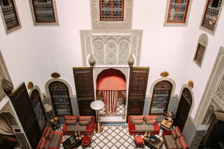 Отель La Maison Bleue Batha 5 звезд, адрес на карте Фес, 2 Place de l'Istiqlal, Batha, с описанием номеров и доступностью онлайн бронирования на ресурсе ВашОтель.RU , цены проживания и удобства.