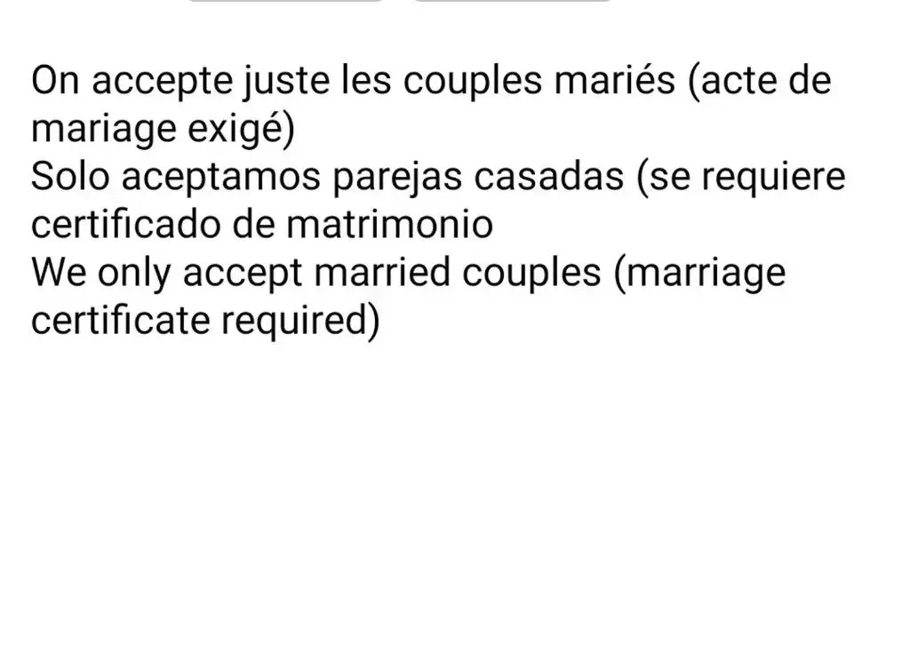 Пары, въезжающие в один номер должны предоставить свидетельство о браке при регистрации заезда. В противном случае, объект может отклонить бронирование или запросить бронирование второго номера.
