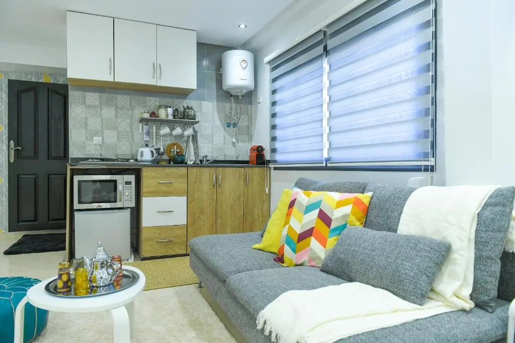 Отель Cosy well equipped studio in the heart of Kenitra 1 звезда, адрес на карте Кенитра, Résidence Les Orangers 2, Bureaux A, Appartement 2, Rue Ahmed Chaouki, La Ville Haute, Kénitra, Morocco, Kenitra, с описанием номеров и доступностью онлайн бронирования на сайте vashotel.ru , стоимость проживания и удобства.