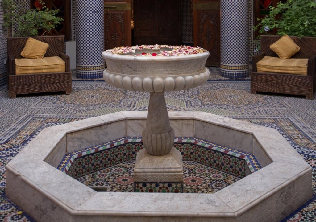 Днем можно освежиться в бассейне, посетить косметические процедуры или массаж, расслабиться в хамаме и продегустрировать блюда марокканской кухни в ресторане отеля Palais Sebban. А если они придутся по вкусу, определенно стоит пойти на кулинарные курсы и овладеть секретами шеф-повара.