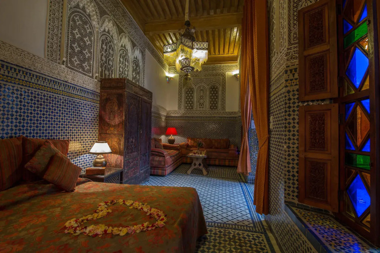 Отель Palais Sebban расположен в риаде Марракеша – старинном здании, которое является образцом марокканско-андалузской архитектуры. Гости отеля смогут насладиться роскошными интерьерами с резными потолками, мраморными элементами декора и фонтанами.