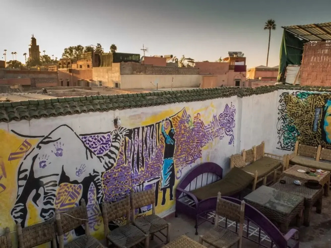 Отель Backpackers Grapevine Hostel, адрес на карте Марракеш, 21 Derb Sidi Bouloukate Quartier, с характеристиками номеров и доступностью онлайн бронирования на ресурсе vashotel.ru , стоимость проживания и удобства.