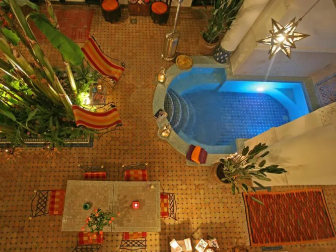 Отель Riad Aloes, адрес на карте Марракеш, 129 Derb Snane, с характеристиками номеров и доступностью онлайн бронирования на площадке vashotel.ru , стоимость проживания и удобства.