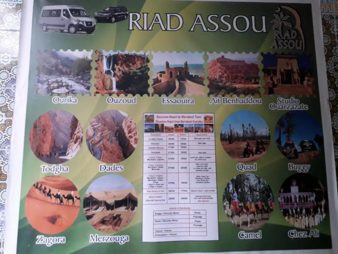 Место, куда приятно возвращаться после долгих прогулок. Гостевой дом «Riad Assou» находится в Марракеше. Этот гостевой дом располагается в пешей доступности от центра города. Рядом с гостевым домом можно прогуляться. Неподалёку: Дом фотографии, Медресе Бен Юссеф и Площадь Рахба Кедима.