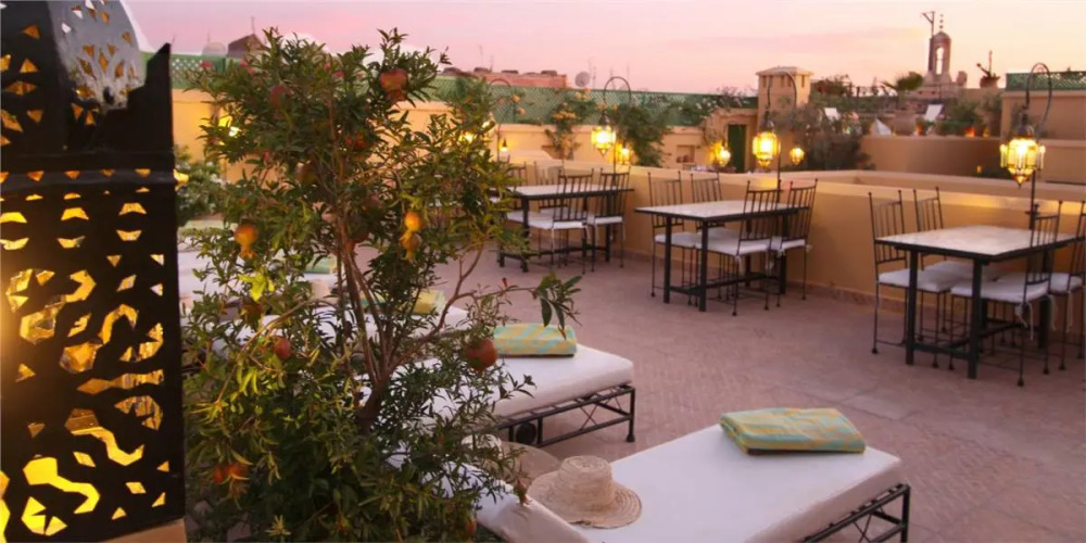 Утром для гостей отеля сервируется бесплатный завтрак. В любое время дня в ресторане вы можете попробовать традиционные блюда, которыми так славится Марокко. Обед сервируют по вашему выбору в гостиной, внутреннем дворе или в вашем номере. В баре представлен богатый выбор вин и легких закусок.