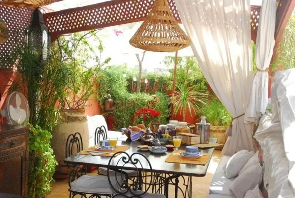 Утром гости могут заказать завтрак в номер. В ресторане отеля вы попробуете блюда традиционной марокканской кухни. Для легких закусок и напитков работает бар в гостиной.