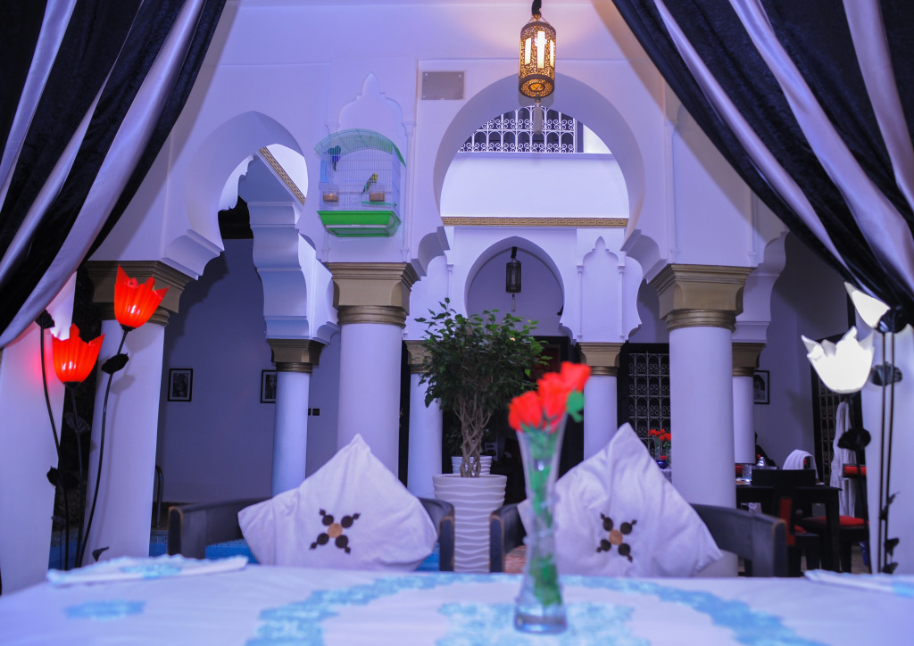 Утром для гостей накрывается бесплатный завтрак с традиционными марокканскими сладостями и свежими фруктами и соками. Легкие закуски и напитки подаются в баре отеля.