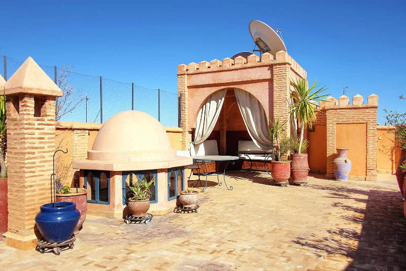 Бюджетный вариант для активного отдыха — отель «Riad Soundouss» располагается в Марракеше. Этот отель находится 1 км от центра города. Рядом с отелем — Рынок Ensemble Artisanal, Сад Мажореля и Мечеть Муассин.