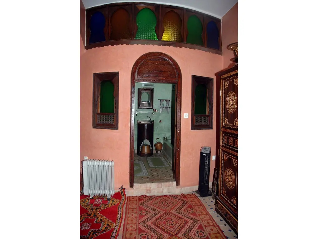 Обратите внимание, что здание риада пристроено к старой стене медины. Чтобы попасть в него, необходимо пройти через второй арочный проход в стене.