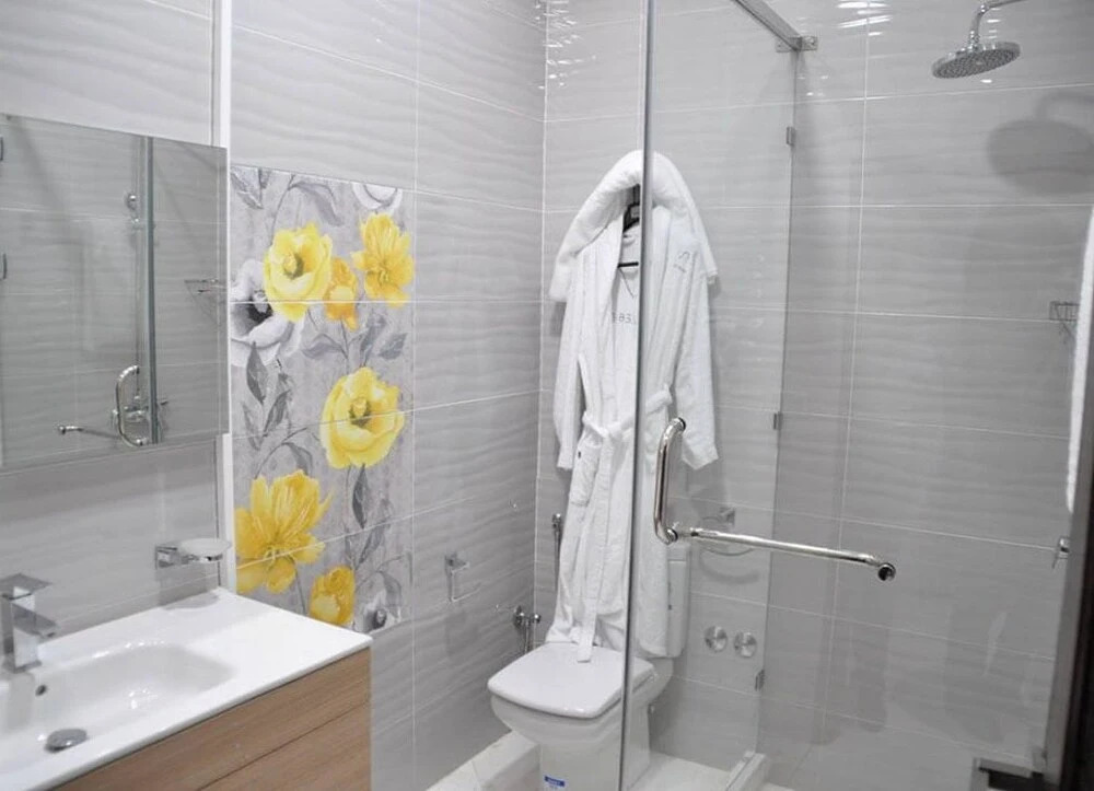 В номере вы найдёте халат. Оснащение зависит от выбранной категории номера.