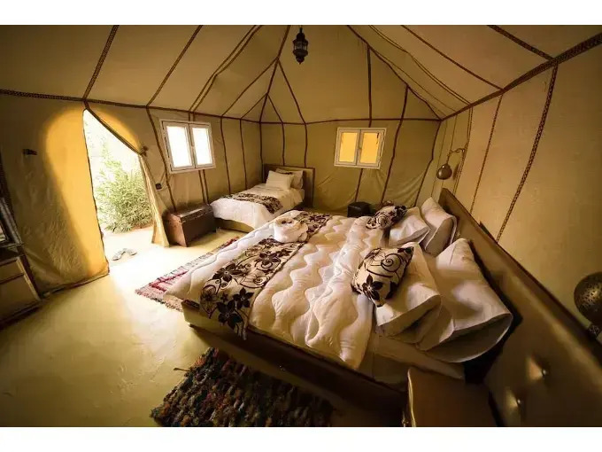 «Luxury Morocco Camp» находится в Мерзуге. Этот отель располагается в центре города. Утром — выпейте кофе, наблюдая из окна за жизнью города.