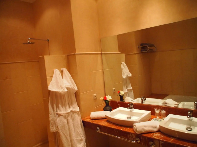 В номере вас будут ждать DVD-плеер, душ, телевизор и халат. Оснащение зависит от выбранной категории номера.