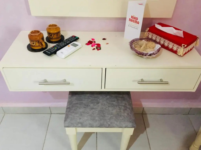 Please inform Riad Nasma Souihla in advance of your expected arrival time. You can use the Special Requests box when booking, or contact the property directly with the contact details provided in your confirmation. Guests are required to show a photo identification and credit card upon check-in. Please note that all Special Requests are subject to availability and additional charges may apply.