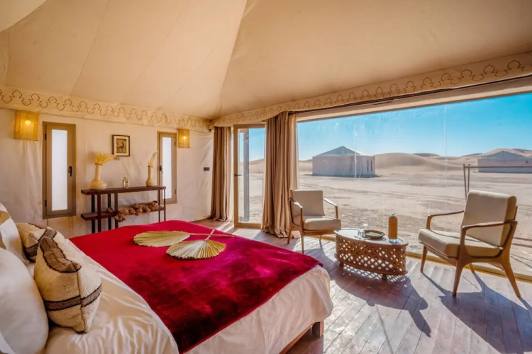 Отель Ghazala Camp, адрес на карте Тагунит, MHAMID, с описанием номеров и правом онлайн бронирования на сайте vashotel.ru , цены проживания и удобства.