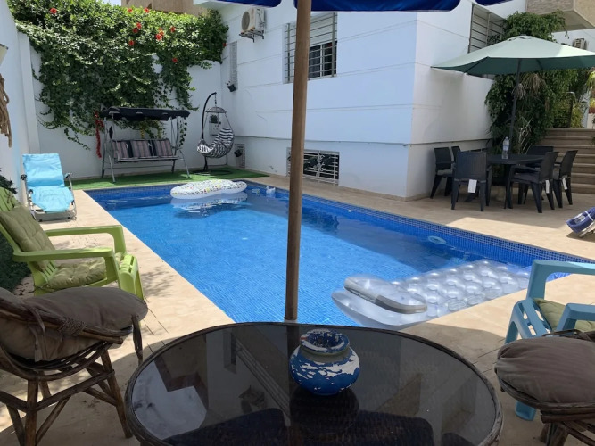 Отель Au Coeur Des Plages De Harhoura Rabat 4 звезды, адрес на карте Темара, 2 Rue Tripoli Sid El Abed Harhoura, с описанием номеров и правом онлайн бронирования на площадке vashotel.ru , стоимость проживания и удобства.