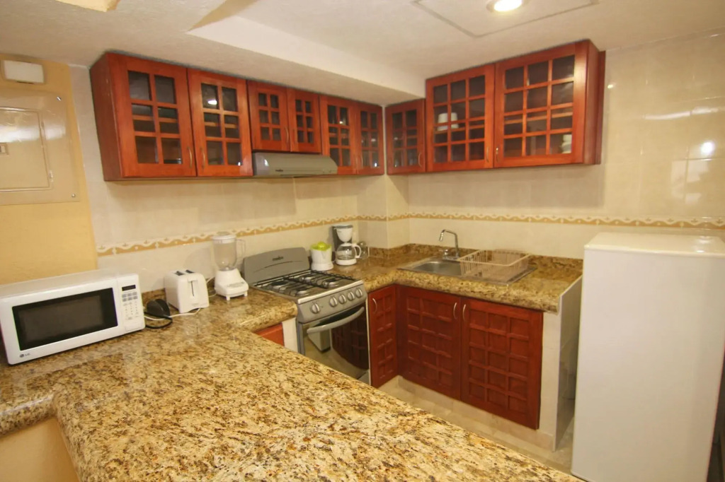 В каждом номере есть кухня, оборудованная всей необходимой техникой: холодильником, микроволновой печью, кофеваркой и чайником.