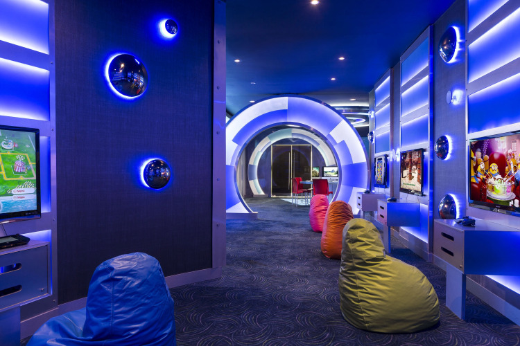 Обеденная зона представлена гостиной, 2 барами у бассейнов и 10 ресторанами различных кухонь мира.