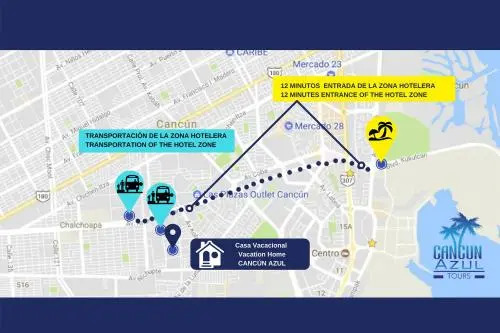 Отель Hospedaje Vacacional Cancún Azúl I, адрес на карте Канкун, Calcetoc Lote 11 y 12, с характеристиками номеров и правом онлайн бронирования на сайте ВашОтель.RU , цены проживания и удобства.