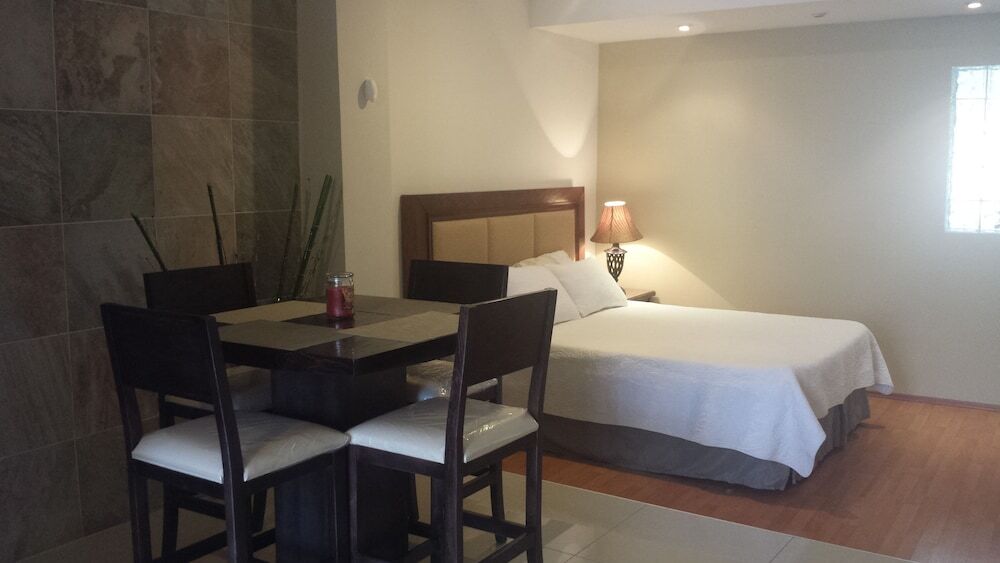 Отель Apartments Mirador, адрес на карте Чиуауа, Avenida Mirador, 4718. Campestre Residencial, 31213 Chihuahua, Mexico, с описанием номеров и доступностью онлайн бронирования на сайте vashotel.ru , цены проживания и удобства.