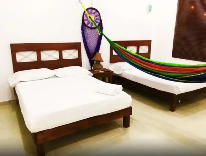 Отель Flamingos Hostel, адрес на карте Остров Ольбокс, 56 Calle Gonzalo Guerrero, с описанием номеров и доступностью онлайн бронирования на сайте vashotel.ru , стоимость проживания и удобства.
