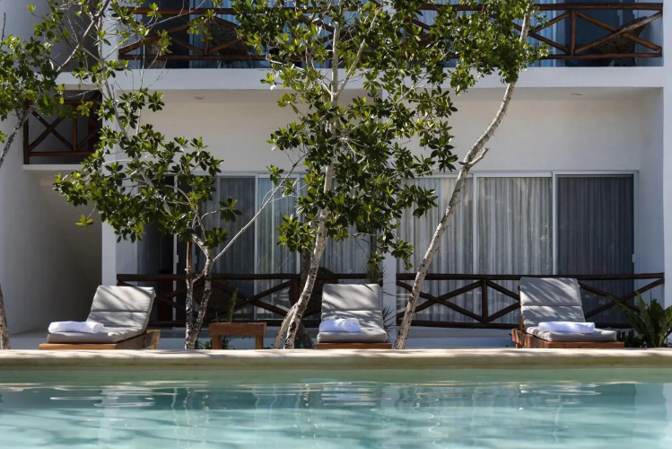 Отель Sanyama Holbox 2 звезды, адрес на карте Остров Ольбокс, Calle Hernan Cortes MZ 0052, с описанием номеров и возможностью онлайн бронирования на сайте vashotel.ru , цены проживания и удобства.