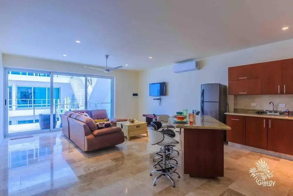 Отель Estrella Del Mar - One Bedroom Suite 102 by Skyrun, адрес на карте Исла Мухерес, Ave Juarez, Centro, с характеристиками номеров и возможностью онлайн бронирования на ресурсе vashotel.ru , цены проживания и удобства.
