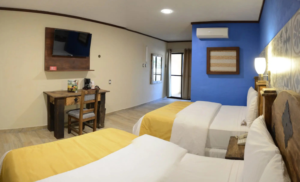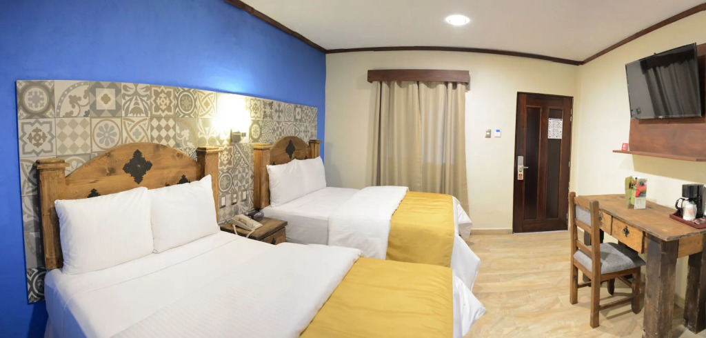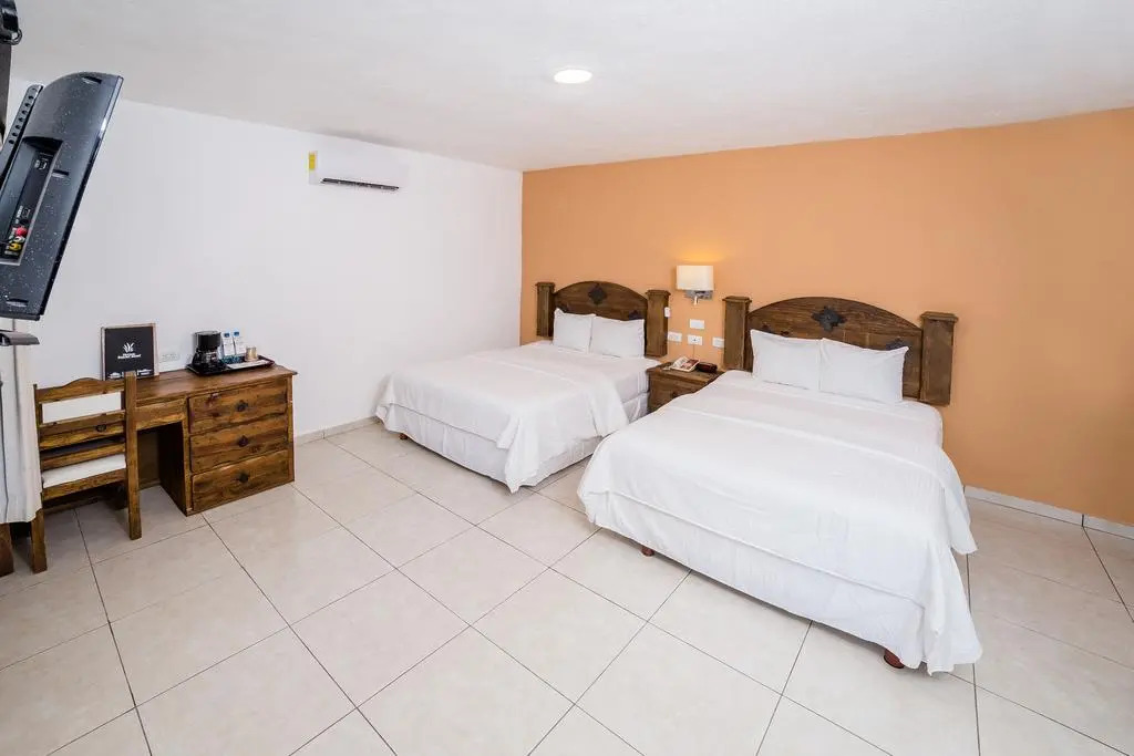 Отель Hacienda Inn Aeropuerto 3 звезды, адрес на карте Мерида, Aviación 709, Nueva Sambulá, с характеристиками номеров и возможностью онлайн бронирования на ресурсе vashotel.ru , стоимость проживания и удобства.