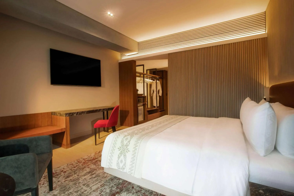 Спортивные гости оценят фитнес-центр и тренажёрный зал. В отеле можно организовать деловую встречу, переговоры и даже собеседование. Для этого предусмотрены бизнес-центр, конференц-зал, специальное оборудование. В путешествие можно взять питомца. В отеле возможно размещение с домашним любимцем. Чтобы путешествие было не только приятным, но и удобным, гости могут заказать трансфер.